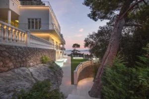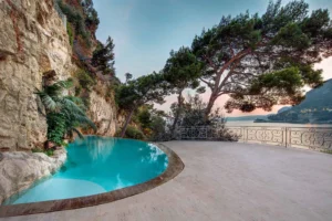 Perched on a cliff overlooking the Mediterranean Sea and Cap Ferrat, Villa Mala is a luxurious 7-bedroom estate, just 8 minutes from Monaco, which combines striking contemporary design with the charm of the French Riviera. With private access to a nearby beach and a boat pier, Villa Mala offers convenience and elegance. The spacious main residence features high-end designer furnishings, floor-to-ceiling windows with breathtaking views, and ultra-modern amenities. Accommodating up to 14 guests, it boasts 3 master suites with private terraces and marble bathrooms, alongside a spa, sea-view pool, and a fully equipped, professional kitchen.
