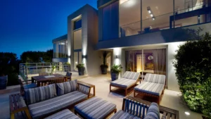 Each of the seven individually-designed guest bedrooms offers a separate enclave, complete with bathroom and private terrace. With its indoor pool and lavishly equipped exercise room, this exclusive retreat offers privilege, personality and world-class performance.