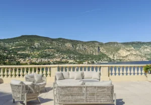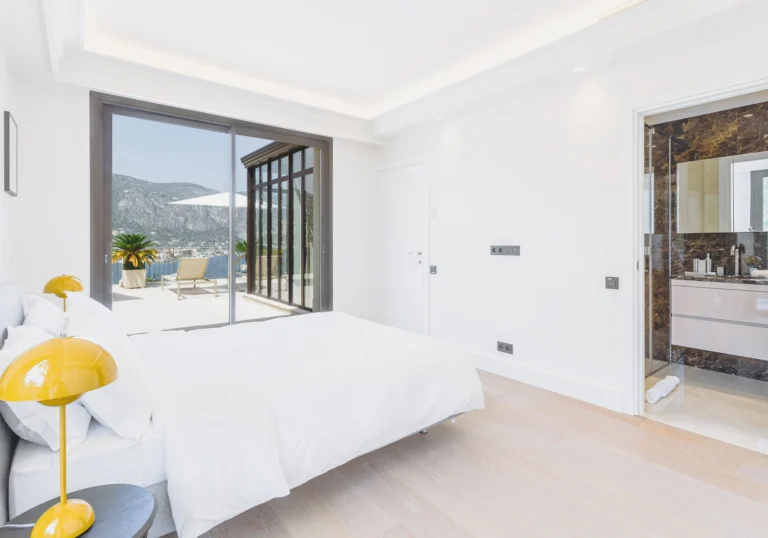 Perched on a gentle hill in the prestigious Saint-Jean-Cap-Ferrat, this brand-new luxury villa rental is ideally located just a 6-minute walk from a beautiful sandy beach and a 10-minute walk from the charming town center. A semi-private, secure path directly links the villa to the famous Maurice Rouvier Promenade, offering a picturesque seaside stroll. The standout features of this property include lush, beautifully landscaped gardens, a heated pool, a rooftop terrace, and panoramic vistas of the Mediterranean Sea.