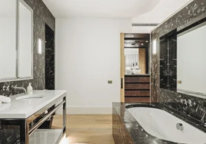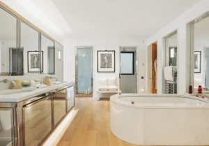 Spread across 5 floors, the impressive villa boasts 5 bedrooms, each with its own en suite bathroom. Four of the bedrooms are spacious and offer beautiful sea views. The villa features 2 bedrooms on the 1st floor, the Master bedroom on the 3rd floor, and another bedroom with a hammam on the 4th floor. The 5th bedroom on the ground floor does not have a window and will be suitable for children or staff members. This luxury holiday villa can comfortably accommodate up to 10 guests.