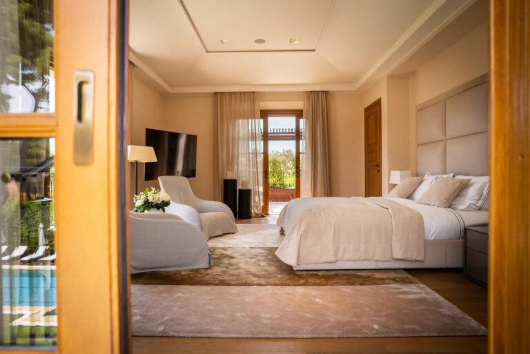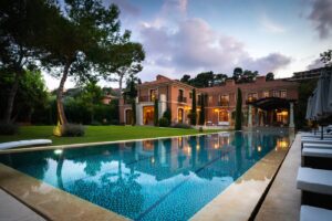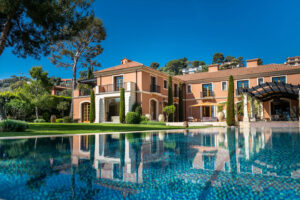 Exclusive waterfront property with direct private access to the sea, designed by the famous architect Robert A.M. Stern. Beautifully situated in one of the most exclusive areas of the peninsula of Cap Ferrat. Nestled under a canopy of native umbrella pines, the residence for 12 guests offers panoramic views of the Mediterranean sea. The 3-storey villa extends over a property land of about 4,000 sqm and has a living area of 1,150 sqm. It offers state-of-the-art facilities such as a fitness & spa area, a cinema room, a wine cellar, several terraces and a 24-meter-long heated swimming pool.