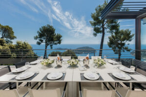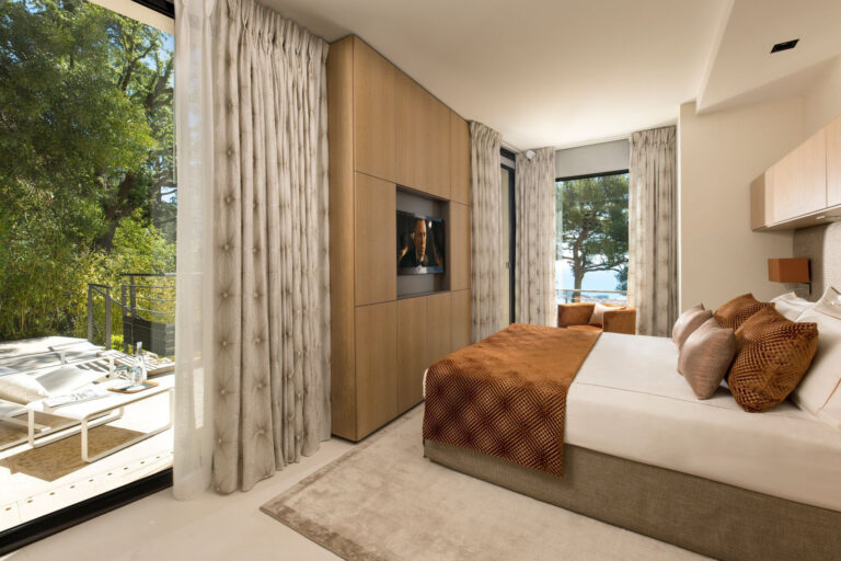 Looking down over the bay from its secluded hillside setting, this stunning Côte d’Azur villa lies in the exclusive Domaine du Castellet area, just moments from the centre of Villefranche and Beaulieu. The extensive terraces and gardens offer breathtaking views over the Bay of Villefranche, Saint Jean Cap Ferrat and beyond. Spaces are light-filled and extravagant, designed for calm contemplation or, equally, for entertaining.