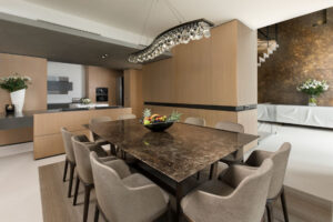 – Cutting-edge design incorporating rough stone, polished glass and clean lines
