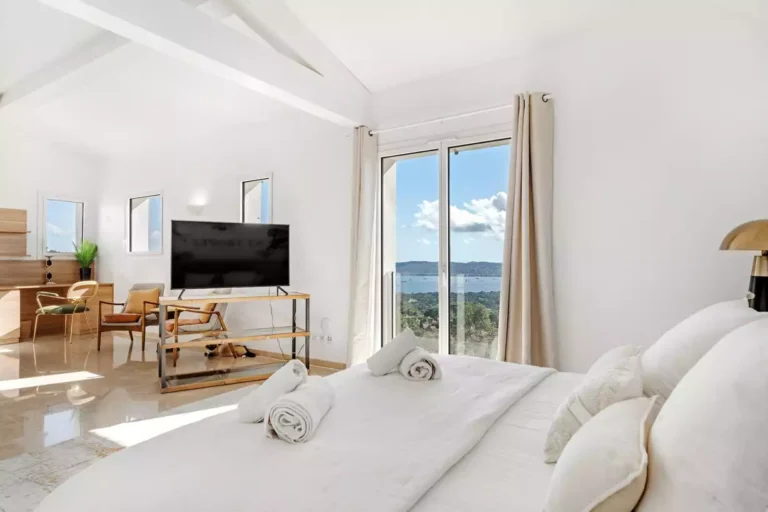 Nestled in the heights of Grimaud, Villa Carven offers a breathtaking view of the Gulf of Saint-Tropez and its surroundings. Its layout along the hillside allows you to enjoy this favorable location from almost every corner of the residence