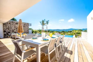 It is stunning, located very close to the beach, making it an ideal spot for a holiday. The villa is modern, secure, and very well-maintained. We particularly enjoyed the pool, perfect for relaxing, as well as the kitchen, which is spacious and very well equipped with everything you need. In summary, a comfortable stay in a superb setting, which we highly recommend.