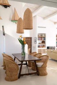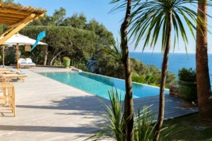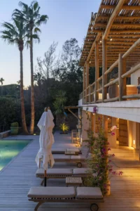 Welcome to Paradise! Part bohemian, part Saint Tropez chic, Villa La Finca transports us to the legendary era of the sixties French Riviera. Start your mornings with a family breakfast at the round wooden table on the terrace. The aroma of coffee mingles with the marine breeze and in front of you, the sea stretches endlessly and melts into the clear blue sky. Then pick your favourite spot under the sun: will it be a deckchair by the pool or in the shade of a parasol overlooking the waves?