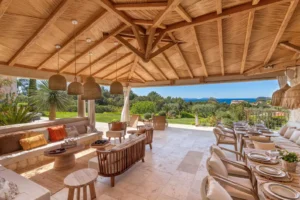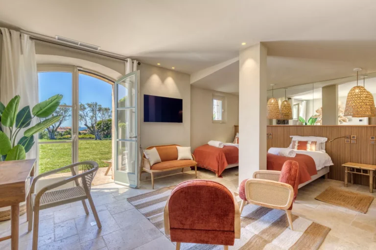 At High Ticket Brokers, we present Villa Sabbia — a luxurious retreat in La Croix-Valmer, just steps from the beach, embodying all the tranquillity and elegance of the French Riviera. Its tall windows flood the spacious living room with light, highlighting a chic bohemian design and offering panoramic sea views.