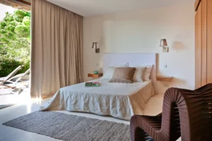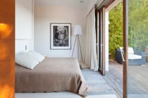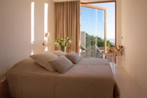 Carefully designed to offer the same level of comfort both indoors and outdoors, each room opens onto its own private terrace. Tastefully decorated and spacious common areas are situated around a majestic fireplace that separates the enormous living area from the in-house cinema.