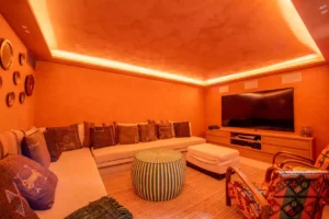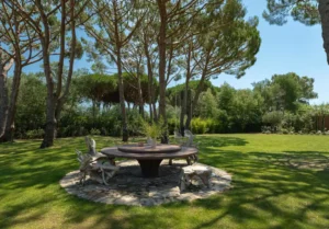 The morning begins with a session in the sunlit gym, followed by a moment of relaxation in the hammam or jacuzzi. The day unfolds with swims in the heated pool, pétanque or basketball games, and convivial lunches at the pool house. As evening falls, the villa is enveloped by the soft light of the evening, creating a perfect sense of serenity.