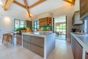 It is stunning, located very close to the beach, making it an ideal spot for a holiday. The villa is modern, secure, and very well-maintained. We particularly enjoyed the pool, perfect for relaxing, as well as the kitchen, which is spacious and very well equipped with everything you need. In summary, a comfortable stay in a superb setting, which we highly recommend.