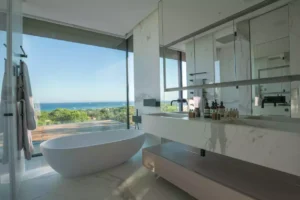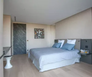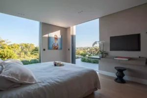 At High Ticket Brokers, we present Villa Constanza , Surrounded by palm trees, olive trees and cypresses, this villa is a delightful seaside home with a white façade and elegant columns embraced by climbing plants. Inside, the décor is a vision of elegance and simplicity. The omnipresent white and light tones create a sense of light, accented with subtle, smooth champagne hues. Elephant tusks, suitcases, miniature ships and photographs hark back to epic journeys of the past. The lounge itself feels like it’s floating on the water, with its huge bay window overlooking the pool and the Mediterranean beyond.