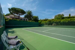 Wake up and head to the beach for a refreshing swim in the calm of the morning. Later, relax by the pool while the kids enjoy the playground. For those feeling active, the private tennis court is perfect for friendly matches. In the evening, settle into the garden and let the soothing sound of the waves lull you as you take in the beauty of the landscape.