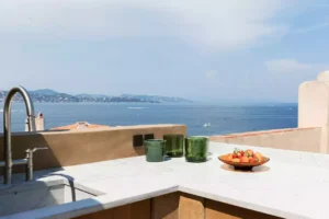 Apartment Picasso, a haven of elegance overlooking Saint-Tropez, offers breathtaking views of the sea and the glittering rooftops of the village. Its minimalist design blends contemporary luxury with Mediterranean warmth, bathed in natural light that enhances every space.