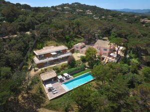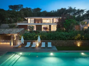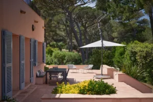 Nestled in a peaceful corner of the Saint-Tropez peninsula, Domaine Des Salins reflects the charm of the Côte D’Azur. Its exterior is composed of a lush Mediterranean garden, while its interior is decorated with carefully selected details, creating a serene and refined atmosphere.