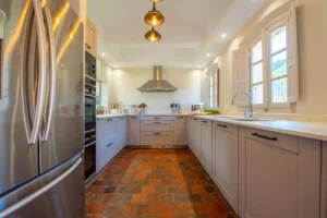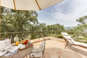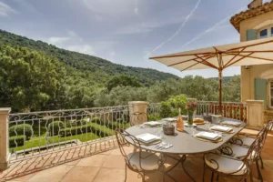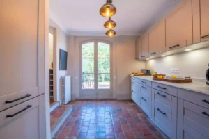 Tucked away in the tranquil outskirts of Grimaud, on the pristine French Riviera, the Domaine Lavande is a luxurious sanctuary, cocooned in a verdant landscape. The villa’s exterior is a charming example of rustic elegance, while its interiors are tastefully adorned with a mix of classic and contemporary decor, with its muted colour palette, terracotta stone floor and modern touches.