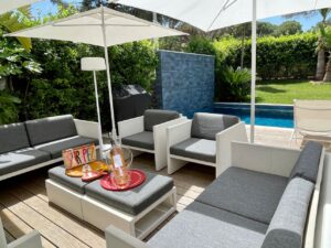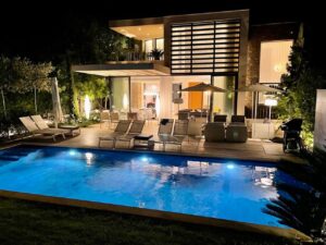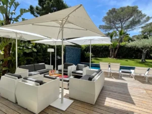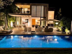 Villa Agapé is a modern home nestled in the lush nature of the Saint Tropez peninsula. With 5 stylish bedrooms and 5 sleek bathrooms, it is ideal for a family getaway or a holiday with a group of friends. Enjoy its beautiful decor, the airy space offered by the high ceiling of the living room and fun days with the children by its crystal-clear swimming pool. The beach of Les Salins is just a short walk away.