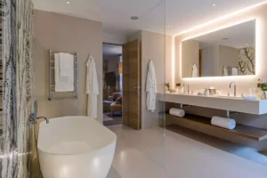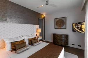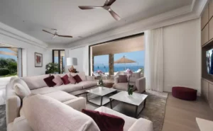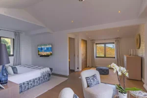Wake up to views of the glistening turquoise sea, followed by a refreshing dip in the heated swimming pool, surrounded by the villa’s lush gardens. As the day progresses, take advantage of the villa’s private beach access and enjoy the pristine sands and clear waters of the Riviera, just a five-minute walk away. In the evening, exercise in the state-of-the-art fitness room or prepare a delicious meal on the barbecue grill, enjoying dinner under the stars.