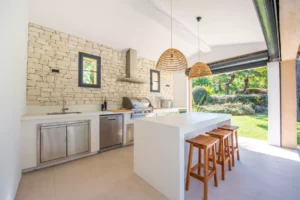 It is stunning, located very close to the beach, making it an ideal spot for a holiday. The villa is modern, secure, and very well-maintained. We particularly enjoyed the pool, perfect for relaxing, as well as the kitchen, which is spacious and very well equipped with everything you need. In summary, a comfortable stay in a superb setting, which we highly recommend.
