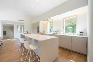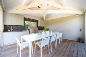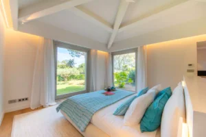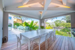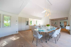 Villa Keira, a perfect blend of contemporary design and Provençal charm, is set in an idyllic location just minutes from Salins Beach. Nestled in the heart of a Mediterranean garden, it invites relaxation and togetherness.