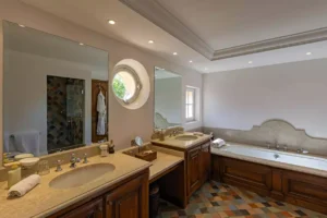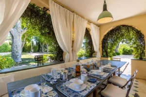 In the morning, immerse yourself in the calming atmosphere of the villa, where every moment is savoured at its own pace. Enjoy a meal under the pergola, the soft shade of the vines surrounding you, or take a refreshing dip in the pool to start the day beautifully. In the afternoon, you’re sure to feel the pull of sports, with a dedicated gym or why not engage in a lively game of foosball? As evening falls, savour a candlelit dinner under the pergola, surrounded by soft lights and the aromas of Provençal cuisine.