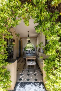 Villa La Bougie, located in Saint-Tropez, evokes the charm of a bygone manor, where the elegance of traditional castles blends with a retro touch, featuring vintage treasures found here and there.