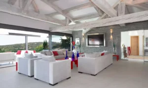 The villa blends contemporary style and Provencal authenticity. Its pool, outdoor bar, pool table, table football and gym are perfect for a relaxing time away. The villa’s proportions are astonishing: the majestic 190 m2 living room, lined with huge windows, is extended by a terrace overlooking the coastline. The separate studio is ideal for a carer or for those in the group who prefer privacy.