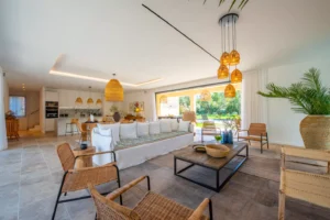 This bohemian-inspired villa on the St Tropez peninsula invites us into its tranquil space. Whether you prefer relaxing in the airy living room on the straw chairs or on the outdoor sofa with a cocktail in hand, Villa Model is the perfect place to let time slow down and enjoy every second. Anyone fancy a refreshing swim?