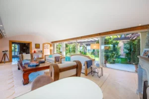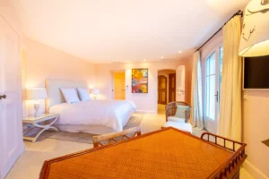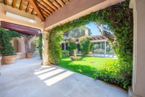 Tucked away in the heart of the Saint-Tropez parks, Villa Rosamora embodies the peaceful charm of Provence. The warm stone interior blends seamlessly with the scents of the Mediterranean garden, where the gentle murmur of a fountain sets the rhythm for the day.