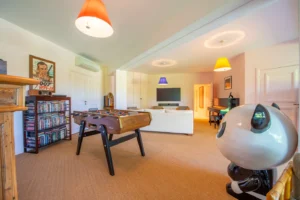Start the morning with a stroll through the garden, where the air is filled with the fragrance of rosemary. The heated pool invites the first dives, while the children laugh joyfully on the trampolines. After lunch on the terrace, the adults set up a game of pétanque beneath the pines. The afternoon stretches into board games or naps in the shade of the olive trees, before ending the day with a barbecue under the stars.