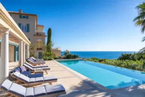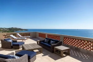 Surrounded by the discreet charm of Sainte-Maxime, in the heart of a private residence, Domaine des Cistes enchants with its refined architecture and harmonious interior design. Here, every detail has been carefully considered to create a serene and elegant atmosphere. The best of all? A panoramic view of the sea, painting a vivid picture of the beauty of the Côte d’Azur.