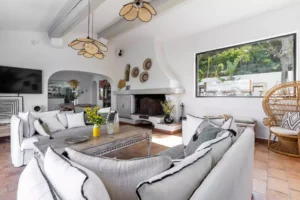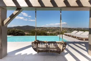 Perched on the hills of Sainte-Maxime, Villa Evissa stretches out with stunning sea views. A lush tropical garden surrounds the villa, offering an intimate and peaceful retreat.