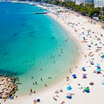 A popular spot for sunbathing, water sports, and beachfront dining.