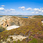 A peaceful walk around the peninsula with lush gardens and azure waters.