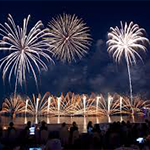 A spectacular water show set against the backdrop of the Burj Khalifa.