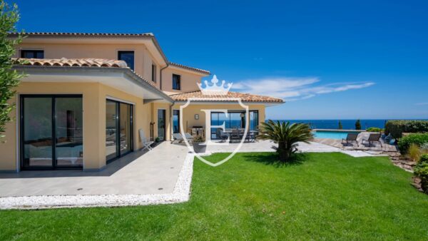 Stunning bioclimatic villa in Sainte-Maxime offers breathtaking 300-degree sea views, a pool, and luxurious amenities. Just 10 minutes from the beach, it features spacious living areas, high-end finishes, eco-friendly systems, and top-tier security.